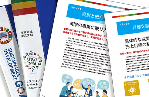 SDGsを活用するメリット、SDGsとは何か?からステップにそって進めていける内容にしています。また、自分で書き込むことで自分ごととして腹落ちさせ、見返すことができるようにしています